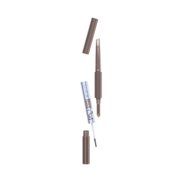 Un completo producto de maquillaje de cejas: un lápiz preciso, un gel y polvos para cejas en uno.
