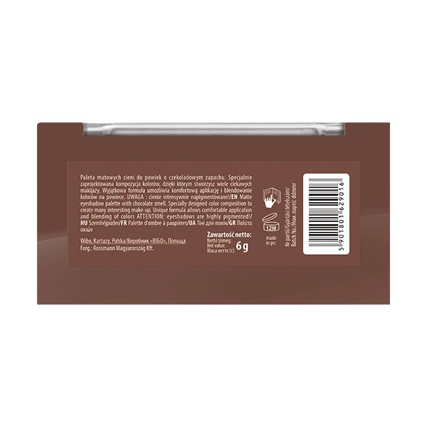 7 colores mate y saturados con fórmula «easy to blend». Déjate llevar por la explosión intensa del aroma y color de chocolate.