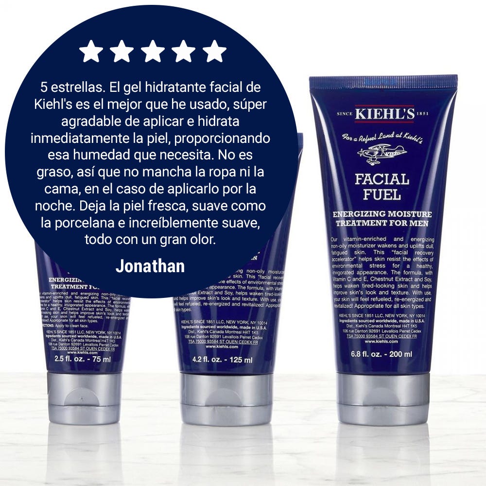 El nuevo gel hidratante masculino Facial Fuel Energizing Moisture con SPF 19 de Kiehl's, tiene una textura en gel muy ligera y de rápida absorción.