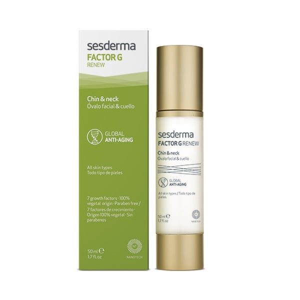 - Aplica Factor G Renew Ovalo facial y cuello con un suave masaje, por todo el cuello y el escote. La cantidad adecuada es la que consigues presionando la bomba 3 veces, para extender uniformemente. Puedes usarlo tanto por la mañana como por la noche.