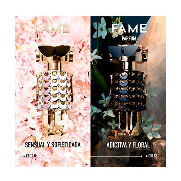 Fame Parfum es el perfume de mujer intenso y duradero que refleja la feminidad magnética de Paco Rabanne.