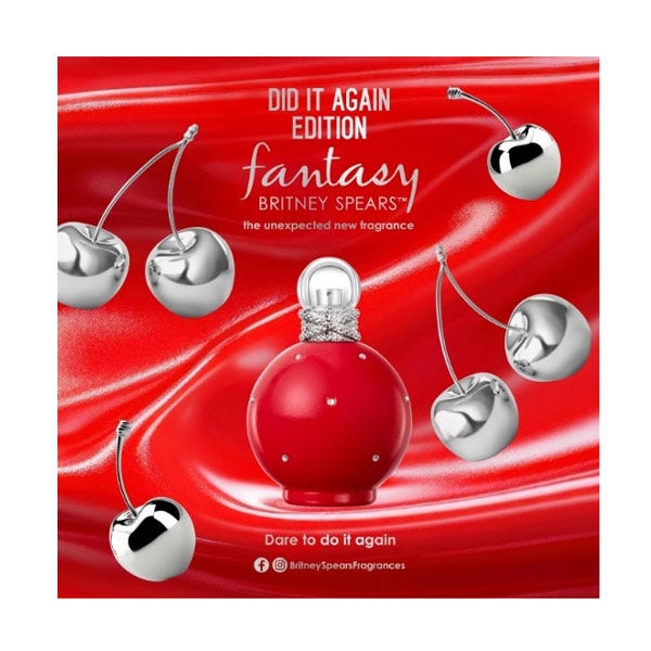 Descubre una fragancia que no solo se percibe, sino que se recuerda. Fantasy Did It Again es una Eau de Toilette que captura el momento con un aura de audacia y coquetería. Su estela, dulce y envolvente, te sigue con una fijación notable que permanece a lo largo de todo el día.
