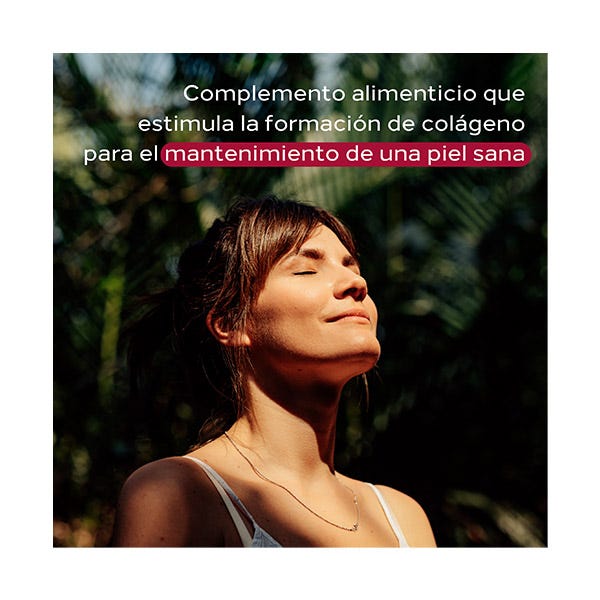 Complemento alimenticio bebible para el mantenimiento de una piel sana. Formulado con colágeno hidrolizado, extracto de acerola, extracto de rosa mosqueta, resveratrol, vitaminas y minerales.