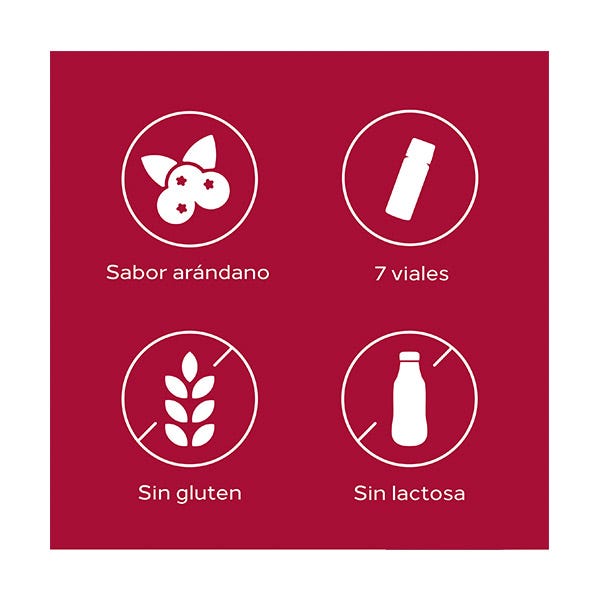 Incluye 7 viales. Sabor arándano.