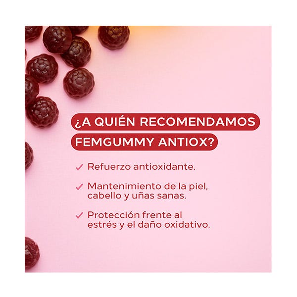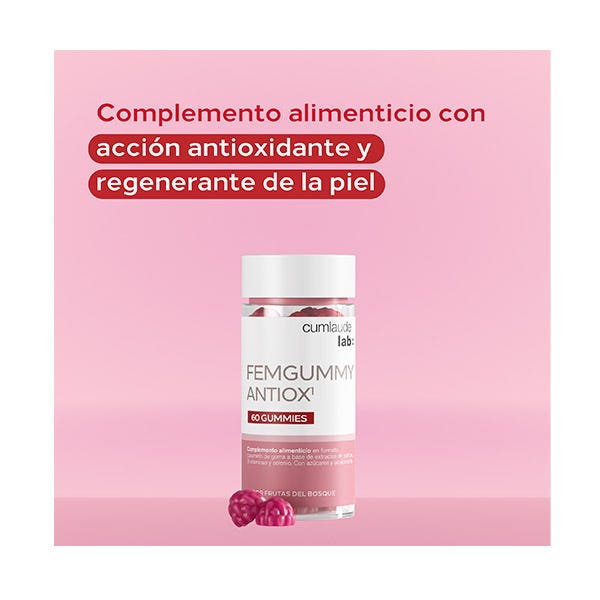 Complemento alimenticio en formato gominola sabor a frutas del bosque con acción antioxidante y regenerante de la piel.