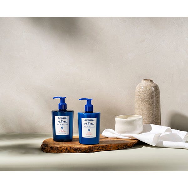 El jabón de manos y corporal Fico di Amalfi evoca los paisajes de la costa amalfitana con una versátil fórmula dual impregnada con las notas revitalizantes de Fico di Amalfi Blu Mediterraneo, y deja la piel limpia, suave e hidratada.