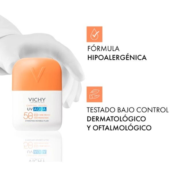 Aqua Fluido Hidratante Spf50 ofrece una protección solar alta con textura ligera y refrescante, hidratando la piel y dejándola suave y confortable.