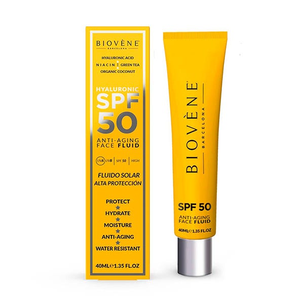 Prepárate para un caluroso día de verano bajo el sol con esta protección solar ultraligera fluido facial hecha con ácido hialurónico, niacinamida y coco orgánico antienvejecimiento y profundamente hidratante.