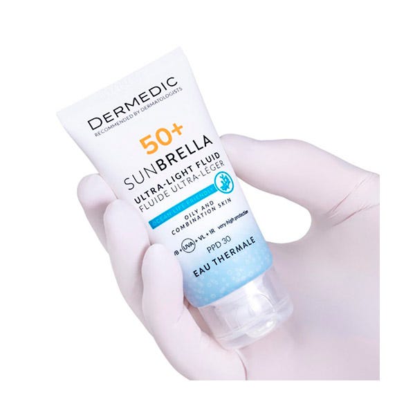 SUNBRELLA Fluido ultraligero SPF 50+ piel con cuperosis e hiperreactiva combina una textura suave a base de agua con un nivel de protección muy elevado para pieles sensibles con cuperosis frente a todo el espectro de los rayos solares. Su fórmula con SPF 50+ y PPD 30 protege eficazmente contra la radiación UV, VL/HEV e IR, previniendo el envejecimiento prematuro y evitando la degradación del colágeno y el ADN celular.