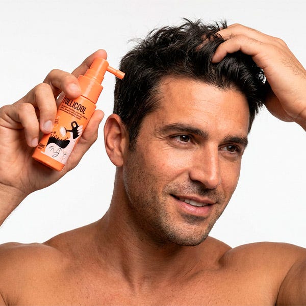 Tratamiento tópico avanzado para frenar la caída y activar el crecimiento del cabello. Serum intensivo anticaída en spray de uso tópico diseñado para hombres de +18 años con pérdida de densidad o caída capilar.