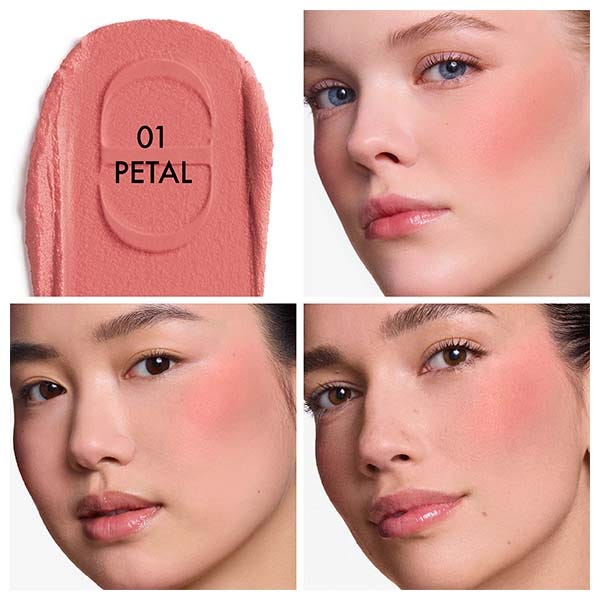 Aplicar el colorete directamente sobre la mejilla con la yema de los dedos para un acabado más intenso o utilizar la brocha Dior Backstage N°16 para un resultado más difuminado.