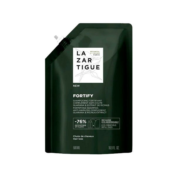 Fortify Shampoo es un champú vegano reduce la pérdida de cabello gracias a los beneficios del extracto de guaraná y ricino.
