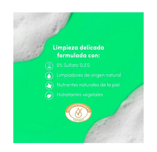 Esta fórmula ha sido dermatológicamente testada y aprobada. Creada con nutrientes naturales para la piel y limpiadores suaves, limpia y nutre respetando el microbioma.
