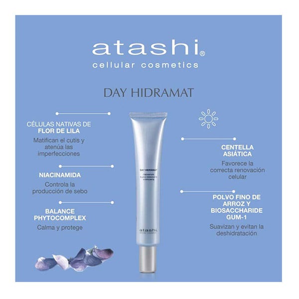 Day hidramat es un fluido multiactivo de uso diario para pieles mixtas con tendencia grasa. Su textura ligera, fresca y de rápida absorción aporta una sensación de piel sedosa y nutrida.