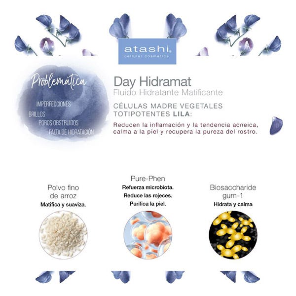 Atashi Cellular Fresh & Pure terapias equilibrantes especialmente creadas para pieles mixtas con tendencia grasa. Formuladas con células madre vegetales de flor de Lila e ingredientes biotecnológicos que te ayudarán a eliminar brillos, atenuar imperfecciones y afinar poros dilatados devolviendo la pureza y el equilibrio a tu piel.