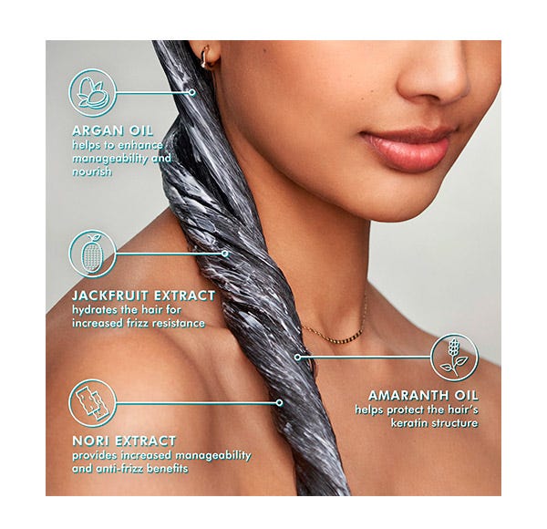 WATER/AQUA, CETEARYL ALCOHOL, STEARYL ALCOHOL, TRIHEPTANOIN, BRASSICAMIDOPROPYL DIMETHYLAMINE, C13-16 ISOPARAFFIN, CETYL ESTERS, COCO-CAPRYLATE/CAPRATE, FRAGRANCE/PERFUME, BEHENTRIMONIUM CHLORIDE, BIS-CETEARYL AMODIMETHICONE, JOJOBA ESTERS, ARGANIA SPINOSA (ARGAN) KERNEL OIL, HELIANTHUS ANNUUS (SUNFLOWER) SEED WAX, ARTOCARPUS HETEROPHYLLUS (JACKFRUIT) FRUIT EXTRACT, HELIANTHUS ANNUUS (SUNFLOWER) SEED OIL, AMARANTHUS CAUDATUS (AMARANTH) SEED EXTRACT, PORPHYRA UMBILICALIS (RED ALGAE) EXTRACT, ROSMARINUS OFFICINALIS (ROSEMARY) LEAF EXTRACT, CAESALPINIA SPINOSA GUM, CITRIC ACID, GLYCERIN, ETHYLHEXYLGLYCERIN, POLYQUATERNIUM-37, HEPTYL UNDECYLENATE, POLYSORBATE 60, CAPRYLYL GLYCOL, CETRIMONIUM CHLORIDE, POLYURETHANE-100, PROPANEDIOL, GUAR HYDROXYPROPYLTRIMONIUM CHLORIDE, PANTHENOL, CETEARETH-25, CETEARETH-7, TOCOPHEROL, POLYGLYCERIN-3, TETRASODIUM GLUTAMATE DIACETATE, LACTOBACILLUS FERMENT, FUMARIC ACID, GLYCOLIC ACID, DIISOSTEARYL MALATE, POTASSIUM HYDROXIDE, SODIUM HYDROXIDE, POTASSIUM SORBATE, SODIUM BENZOATE, CHLORPHENESIN, PHENOXYETHANOL , LINALOOL, ALPHA-ISOMETHYL IONONE.