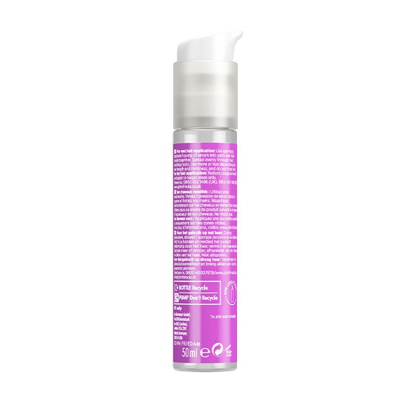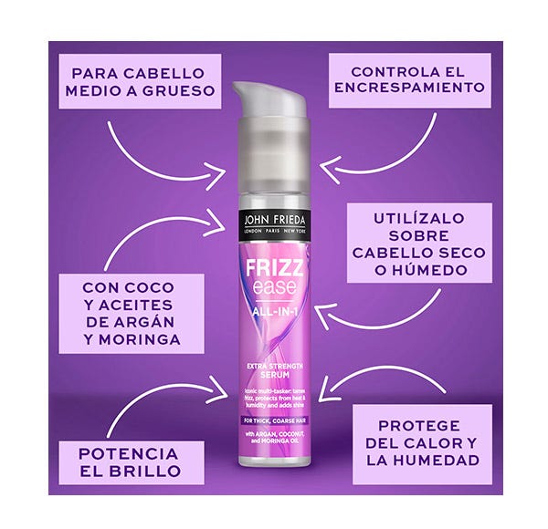 Elimina instantáneamente el encrespamiento y repele la humedad, a la vez que proporciona protección contra el calor.