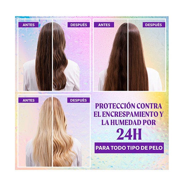 INCREÍBLEMENTE SUAVE: Protección anti-frizz 24H para un pelo suave y deslumbrante. Ideal para cualquier tipo de pelo que necesite defensa contra la humedad, especialmente en mal tiempo