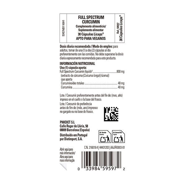 Cúrcuma de espectro completo, agente de recubrimiento: hidroxipropilmetilcelulose.