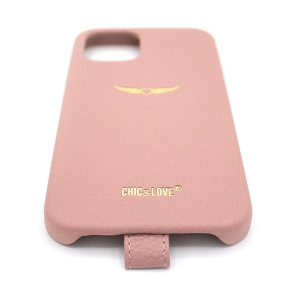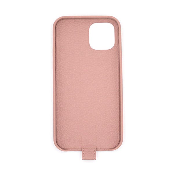 Funda para iPhone 12 Pro en tejido efecto piel con detalles dorados en color rosa.