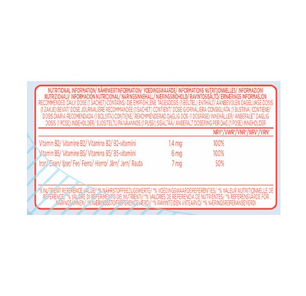 Complemento alimenticio con edulcorante a base de Vitamina B2, Vitamina B5 y Hierro, caramelos de Gelatina sabor a frutas