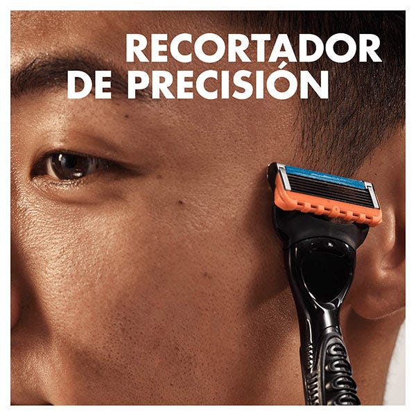 El recortador de precisión de la parte trasera es ideal para llegar a las zonas de difícil acceso y dar forma a la barba. La banda lubricante desaparece cuando ya no puedes obtener un afeitado óptimo. En los juegos de maquinillas, un recambio dura un mes de afeitado.