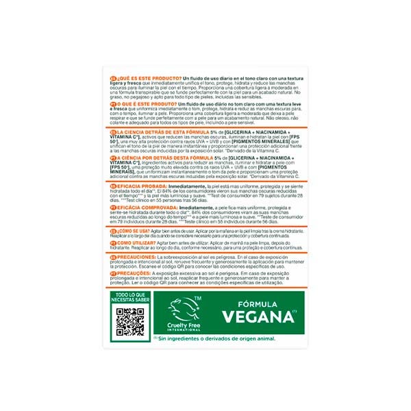 Un fluido de uso diario en el tono claro con una textura ligera y fresca que inmediatamente unifica el tono, protege, hidrata y reduce las manchas oscuras para iluminar la piel con el tiempo. Proporciona una cobertura ligera a moderada en una fórmula transpirable que se funde perfectamente con la piel para un acabado natural.