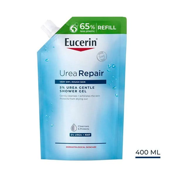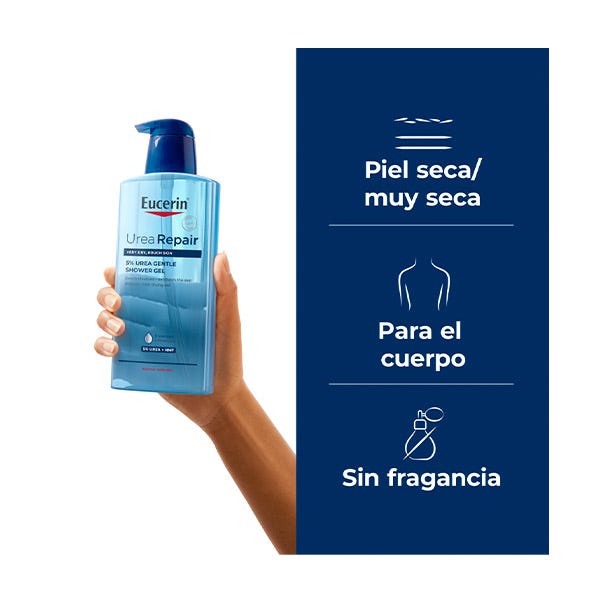 UreaRepair Gel de Ducha Suave 5 % Urea limpia y exfolia la piel seca y áspera con mucha suavidad a la vez que preserva la barrera natural de la piel y protege la piel de la sequedad.