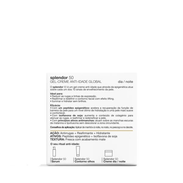 ¿Tu piel mixta-grasa necesita un tratamiento antiedad que mantenga su equilibrio? splendor 50 gel-crema es un tratamiento antiedad global formulado para responder a las necesidades específicas de la piel madura mixta-grasa. Basado en la ciencia epigenética, ayuda a que la piel recupere su buen funcionamiento, mejore su capacidad de renovación y muestre una apariencia más firme, uniforme y luminosa, mientras mantiene a raya el exceso de sebo y los brillos.