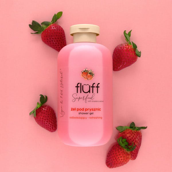 Aqua, lauril glucósido, cocoil isetionato de sodio, sorbitol, glicerina, extracto de fruta de Fragaria Ananassa, proteína de trigo hidrolizada con palmitoil potásico, pantenol, coco-glucósido, cloruro de hidroxipropiltrimonio guar, estearato de glicerilo, diestearato de glicol, oleato de glicerilo, diacetato de glutamato tetrasódico, palmitato de ascorbilo, Citrato de glicéridos de palma hidrogenados, lecitina, tocoferol, perfume, ácido cítrico, benzoato de sodio, sorbato de potasio, 2-fenoxietanol, hidróxido de sodio, cloruro de sodio, CI 16185.