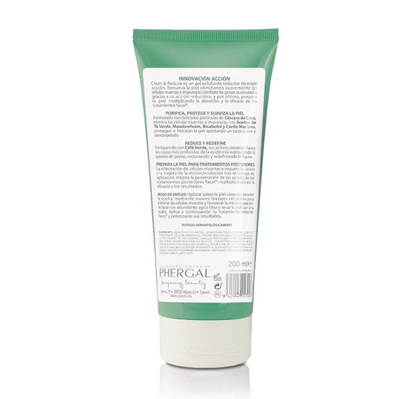 - Reduce y redefine: enriquecido con Café Verde, sus activos penetran hasta las capas más profundas de la epidermis estimulando la quema de grasas, reduciendo y redefiniendo la figura.