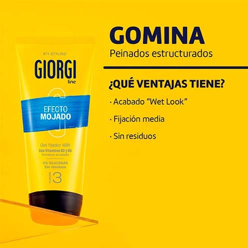 Prueba la Gomina Efecto Mojado de Giorgi que te proporciona un acabado de aspecto brillante y efecto mojado de larga duración. Es de uso frecuente.