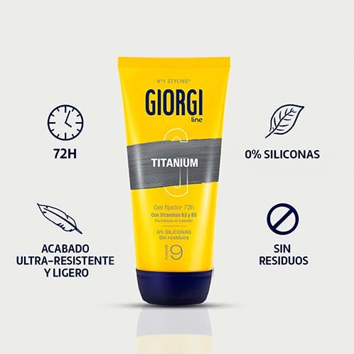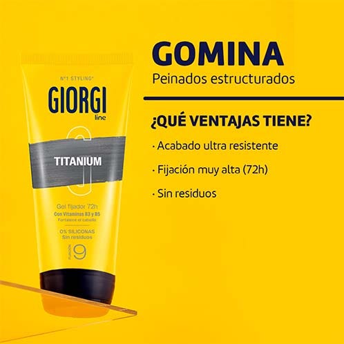 Prueba la Gomina Titanium de Giorgi para fijar y proporcionar un acabado ultra resistente de larga duración, ligero y de uso frecuente.