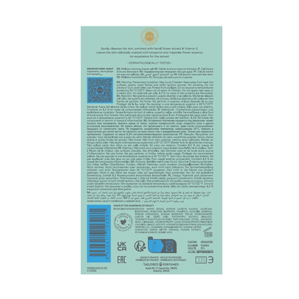 Limpia suavemente, enriquecido con extracto de flor de neroli y vitamina E.