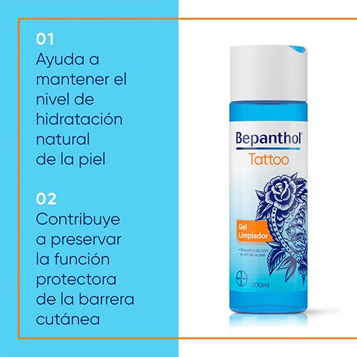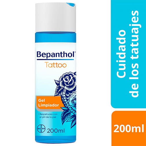 Bepanthol® Tattoo Gel Limpiador 200 ml es un gel limpiador que ha sido específicamente formulado para la higiene de las pieles tatuadas.