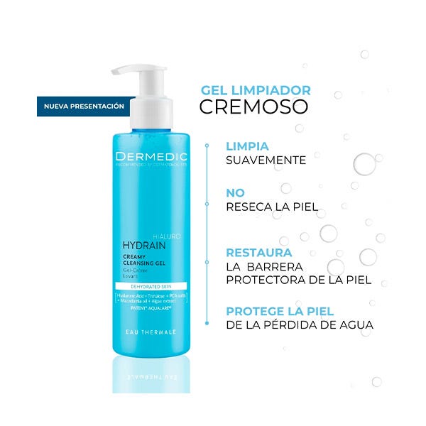 HYDRAIN3 HIALURO Gel Limpiador Cremoso elimina eficazmente el maquillaje e impurezas, dejando la piel fresca y limpia.
