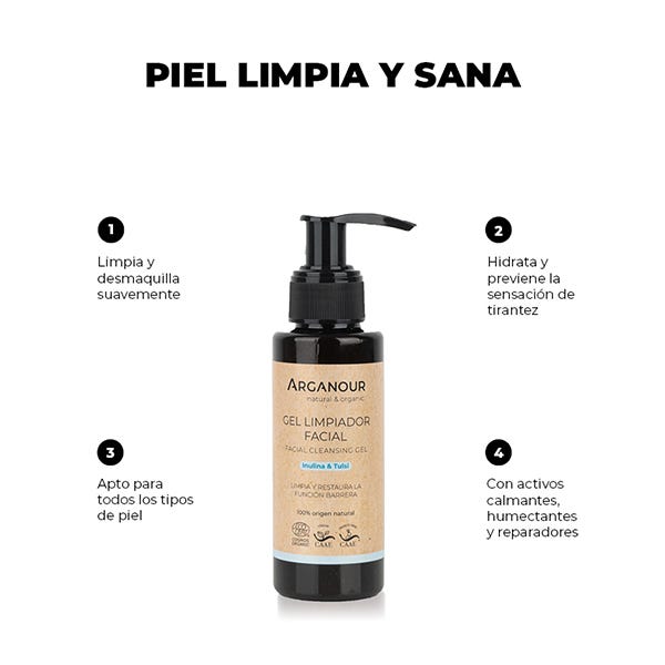 Gel limpiador facial para todo tipo de pieles.Elimina las impurezas de manera suave y eficaz. La inulina hidrata y equilibra la microbiota cutánea mientras repara y protege la función barrera de la piel. Tiene propiedades calmantes gracias a ingredientes como el tulsi, el cardo mariano y el alga verde.