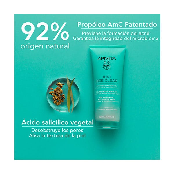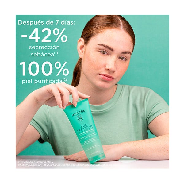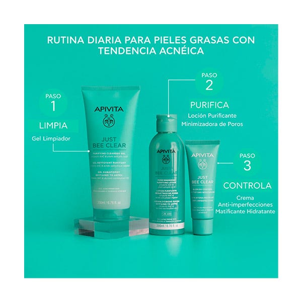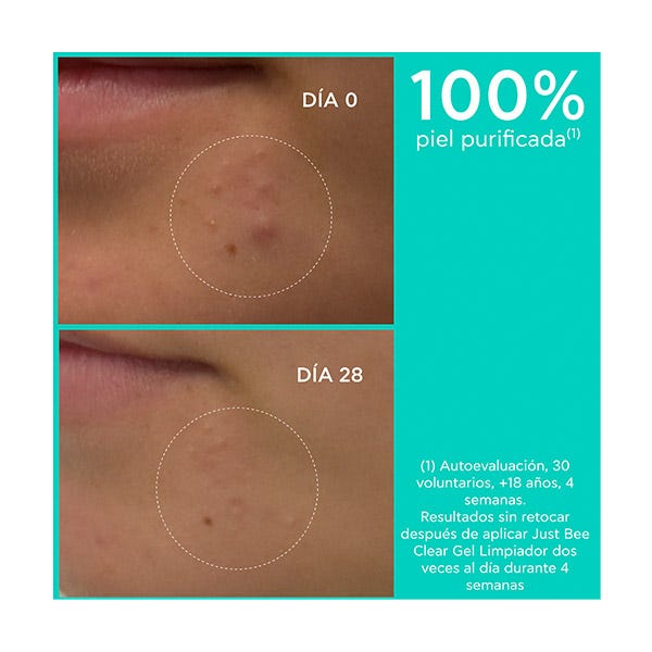 Para maximizar resultados, aplicar después JUST BEE CLEAR Loción Purificante Minimizadora de Poros y Crema Anti-impefecciones Matificante Hidratante.