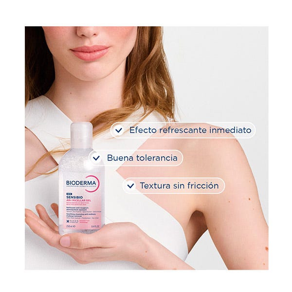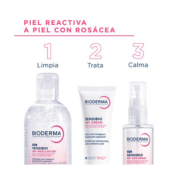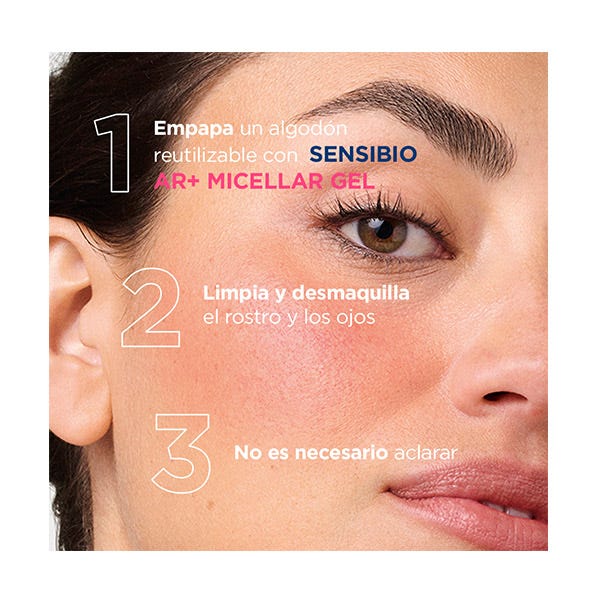 Sensibio AR+ Gel Micelar es el 1er* gel micelar dermatológico con acción anti-rojeces y calmante de higiene facial. La combinación de tres tecnologías: TECNOLOGÍA MICELAR, NUEVA TECNOLOGÍA ROSACTIV™ 2.0 PATENTADA** y TECNOLOGÍA DAF™ - ayuda a regular los mecanismos biológicos de las rojeces.