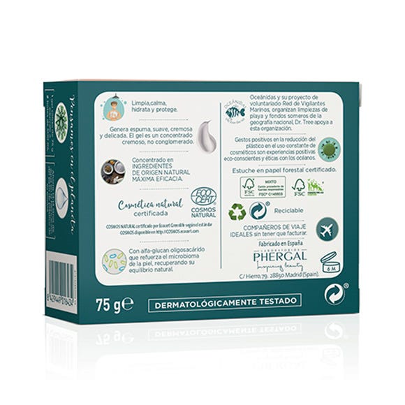 Gel de ducha sólido junior piel sensible a base de un concentrado de tensioactivos de origen natural suaves y cremosos que forman una espuma densa y lujosa, limpiando suavemente la piel y reforzando su microbioma con alfa-glugan oligosacarido, recuperando su equilibrio natural y bioestimulante de las defensas naturales.