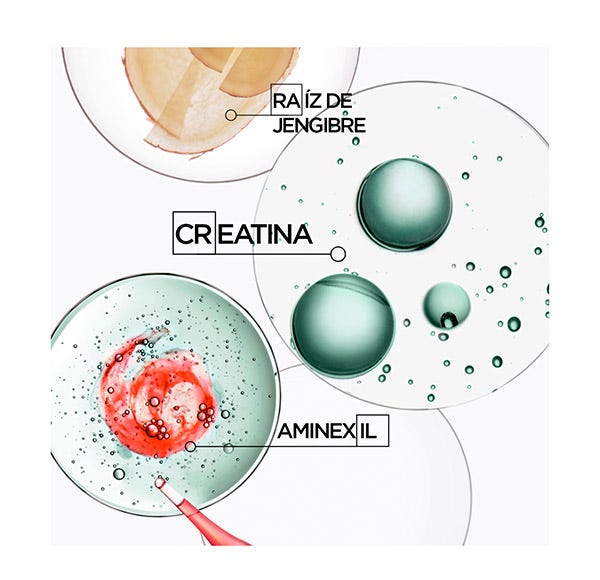 PARA CABELLO DEBILITADO Y AFINADO. Con un cóctel de ingredientes altamente eficaces que fortalecen y engrosan la fibra capilar al instante para conseguir un aspecto más voluminoso de forma inmediata. El cabello resulta 5 veces más voluminoso* y aumenta la resistencia de la fibra en un +85%**. Es un tratamiento diario para prevenir la caída del cabello desde la raíz, reduciéndola en 6 semanas***.