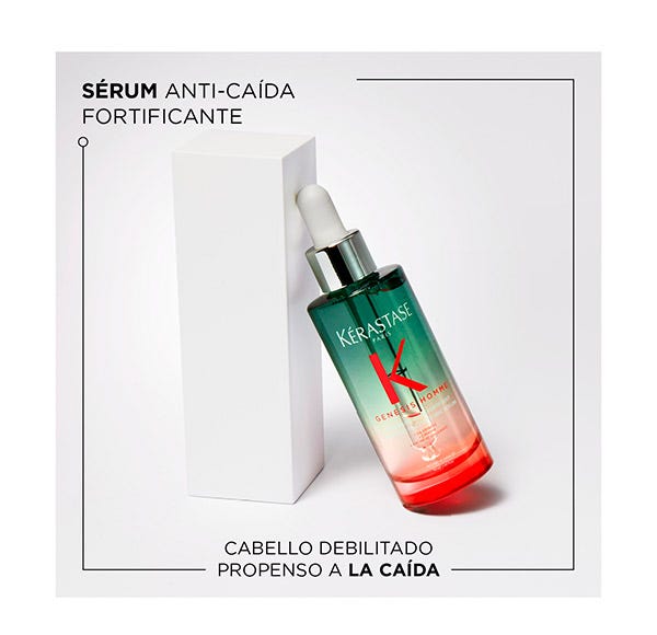 ***Test clínico en 99 personas tras el uso de Serum Fortifiant durante 6 semanas. ¿CÓMO FUNCIONA GENESIS HOMME? Una doble acción para el cliente: Al instante: FORTALECE Y ENGROSA LA FIBRA DEL CABELLO gracias a las raíces de jengibre, creatina y polímeros expansivos. A largo plazo: AYUDA A REDUCIR LA CAÍDA DEL CABELLO, FORTALECIENDO SU ANCLAJE Y RETENCIÓN gracias al Aminexil.