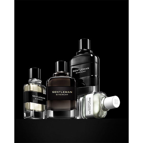 Gentleman Givenchy Eau de Toilette, una encarnación atemporal de la masculinidad, con un sutil aporte floral de tonos masculinos.