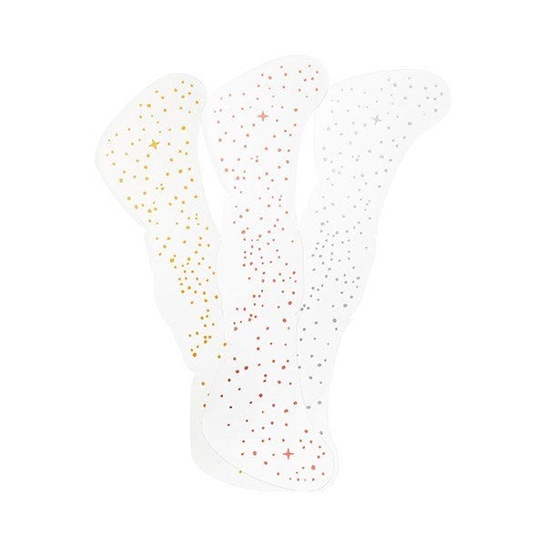 Las tres hojas de tatuaje a prueba de manchas en oro rosa, oro y plata dan a su cara un brillo juguetón y resplandeciente en cuestión de segundos. Tanto si buscas un acabado creativo para el día a día como un look festivalero atrevido, estas pecas temporales añaden un toque expresivo y brillante a tu estilo. ¿El resultado? Un brillo radiante y de aspecto natural que dura. Fáciles de aplicar y de quitar, estos toques de brillo te permiten personalizar tu rostro con encanto y alegría, en cualquier momento y lugar.