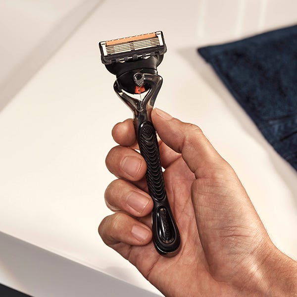 La maquinilla de afeitar Gillette ProGlide para hombre con tecnología FlexBall se adapta a los contornos para ofrecer un afeitado más apurado y cómodo.