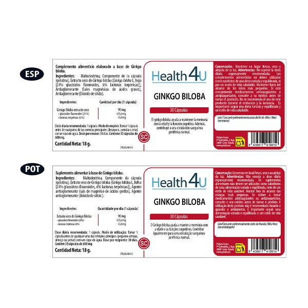 Ingredientes (1 cápsula) Ginkgo Biloba extracto seco 90mg, glucósidos flavonoides (24%) 21,6 mg, lactonas terpénicas (6%) 5,4 mg.