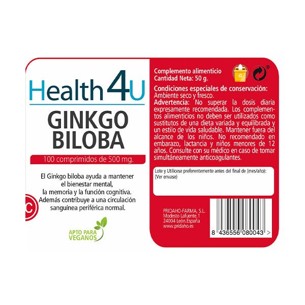 Complemento alimenticio elaborado a base de Ginkgo biloba.