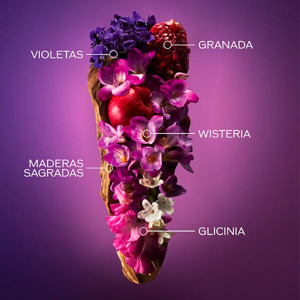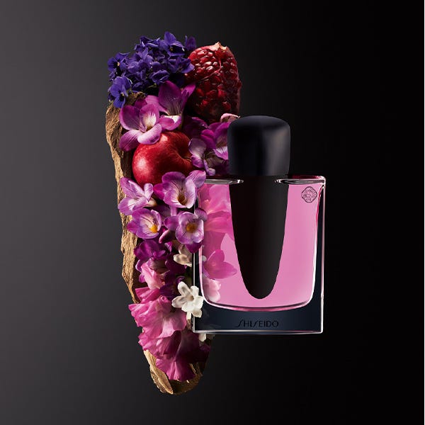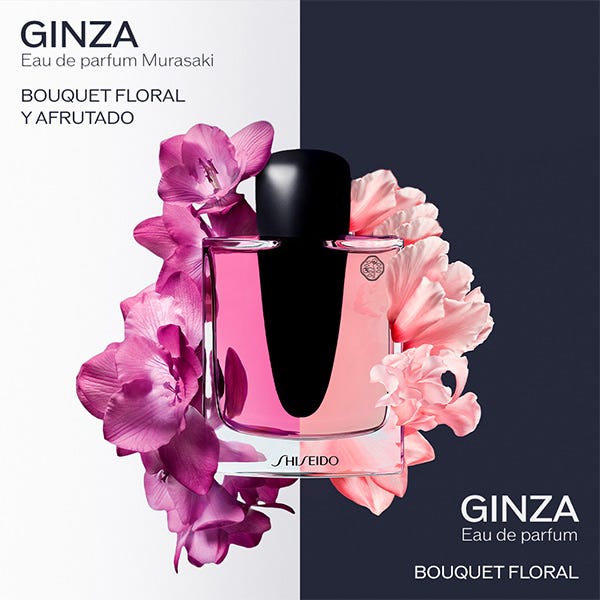 Ginza Murasaki es una fragancia floral afrutada que revela la dualidad de la mujer: su fuerza interior y su feminidad. Su bouquet formado con pétalos delicados de glicinia, fresia, violeta, jazmín, se alía con el aroma afrutado de la granada y enfatizado por maderas como el sándalo que equilibran la fragancia. Frasco de diseño único que simboliza a la vez la feminidad con formas ondulantes y la fuerza interior de la mujer con una daga negra.