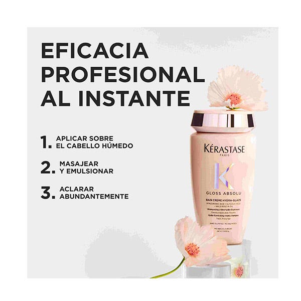 Para mejores resultados, combina Bain Crème Hydra-Glaze con otros productos de la gama Gloss Absolu, como Masque Crème Hydra-Glaze para unos resultados extra-glossy.
