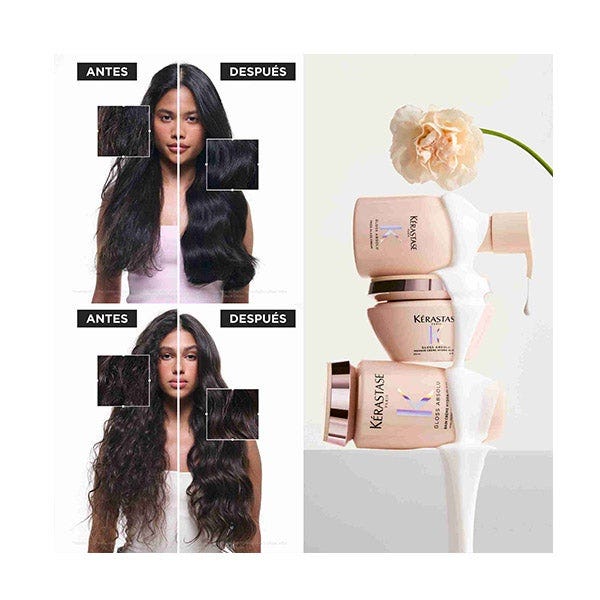 Para mejores resultados, combina con los otros productos de la gama Gloss Absolu. Comienza con Bain Crème Hydra-Glaze para obtener un brillo limpio y sublime. Añade cuidado con Masque Crème Hydra-Glaze. Por último, peina con Kérastase Glaze Drops sin aclarado como toque final de brillo.